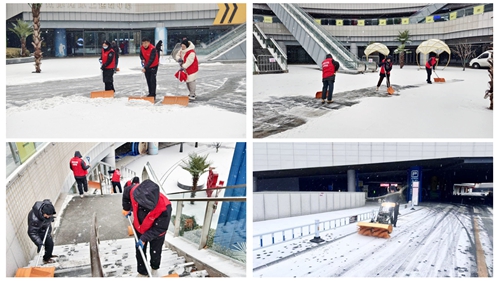 奧體中心迅速啟動(dòng)雨雪應(yīng)急預(yù)案,聚焦核心通道與經(jīng)營區(qū)域,多輪布撒融雪劑、清除積雪、防護(hù)設(shè)施,不間斷開展防墜雪巡查。黨員突擊隊(duì)帶頭沖鋒,對南北門、東廣場等重點(diǎn)區(qū)域掃雪除冰,全力保障人員與車輛通行安全,確保運(yùn)營平穩(wěn)有序。